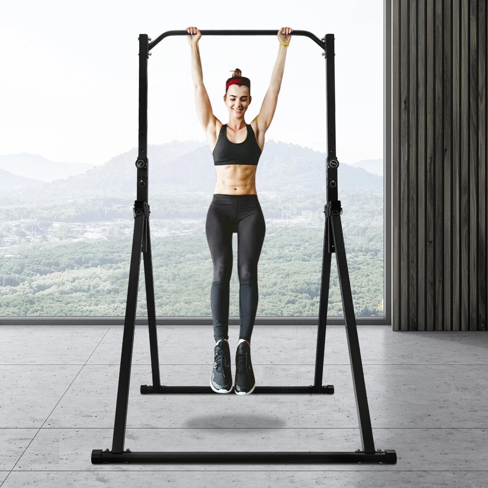 Transform your home into a personal gym with this heavy-duty pull-up bar! Made from high-quality carbon steel with welding and baking paint treatment, it’s rust-proof, durable, and supports up to 440LBS. The adjustable height (5.74-7.55FT) suits all users, while the stable triangular structure ensures safety during workouts. Perfect for pull-ups, dips, leg raises, and core exercises, it helps build arms, back, chest, and abs without expensive gym memberships. The foldable design (45.67×7.09×68.9in) saves space, and anti-slip knobs make adjustments secure. A great gift for fitness lovers—get stronger anytime, anywhere!