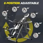- Adjustable Inversion Table: 6 Angle position adjustable rear cross bar for easy inversion angle adjustment eliminates the typical strap system, and the safety belt are also adjustable, in order to accommodate more users 4ft-10in to 6ft-6in in height.