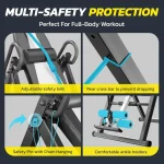 - Triple Protection Safety: YOLEO gravity table make inversion exercise easy and safe, heavy duty integrated steel frame make the table stable and durable, the adjustable ratchet ankle locking system and safety lock Pin system make the table more secure and safe when inverting.