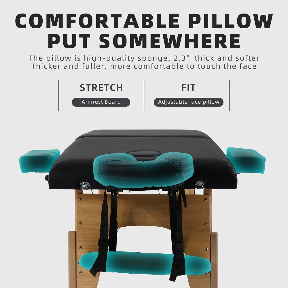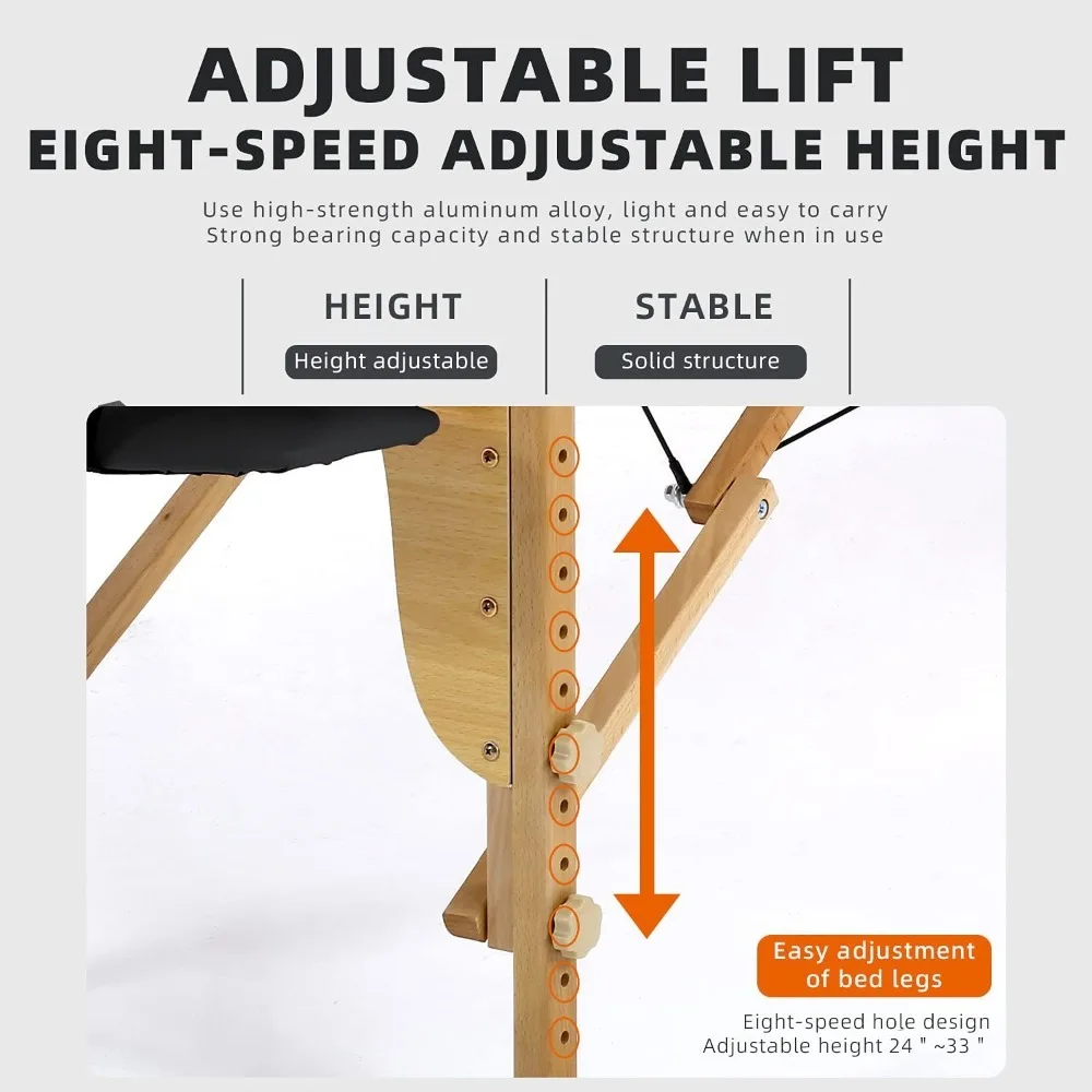 • 【Humanized Design】The massage bed is filled with 2 inches thick, high-density sponge, Plus, for better experiences, the headrest adopts a quick-fix locking device, through which the angle of the headrest can be adjusted and locked which is flexible and soft, very comfortable when lying down. The whole height can be adjusted within 8 different positions and can be adjusted from 24″ to 33″ to meet the various needs of different heights.