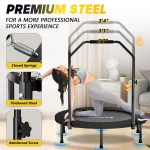 A versatile fitness trampoline designed specifically for adults, combining high-efficiency fat burning, joint protection, and portable storage. Featuring a 32-spring closed-loop spring system, it meets ASTM safety standards, providing a stable and quiet jumping experience with a weight capacity of up to 350 pounds.