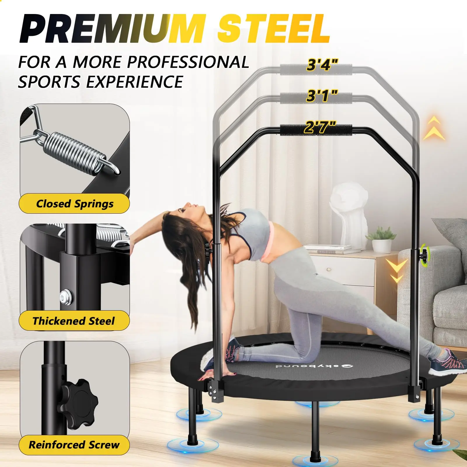 Whether for home fitness, office workouts, or outdoor leisure, this foldable trampoline meets all your expectations for a healthy lifestyle!